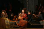 Foresto and Ezio, a guest at one of Attila’s banquets, lay plans for the defeat of the Huns. Foresto reveals that tonight the Huns’ leader is to be poisoned – the Roman warriors must be at the ready to attack the enemy camp at any moment. Sinister omens darken the atmosphere at the feast, and the king is only saved from being poisoned by Odabella’s intervention: unwilling to cede the right to revenge to anyone else, she warns Attila of the attempt on his life.