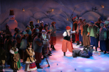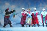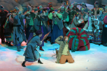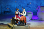 The boys and girls are celebrating the Holy Night. All around there are games, jokes, and masked faces. The drunken Panas disports himself, and Oksana frolics. When she sees Vakula, she says again to him: "Get those slippers, smith, and I will marry you!" But Vakula wants the proud maiden to stop tormenting him, and he decides to leave the village. Everyone becomes concerned lest the smith harm himself or even kill himself in his grief. The Woman With Ordinary Nose and the Woman With Purple Nose run to spread the gossip throughout the village. One tells that the smith has hanged himself, the other that he has thrown himself under the ice. Oksana, too, is worried - what if his grief should lead him to love another, and to call her the most beautiful in the world? Then she notices the sacks that Vakula has left behind. The youths untie them, and Solokha's confused admirers emerge one by one - Chub, the Village Head, and the Sexton. "Ah, Solokha. The woman's a trickster! The woman's a devil!" the crowd shouts out with uncontrollable laughter.
