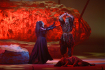 It is the following morning. Siegmund and Sieglinde have fled from Hunding into the mountains. Wotan orders his daughter, the Valkyrie Brünnhilde, to prepare for battle in order to help Siegmund kill Hunding in their coming fight. Fricka, Wotan’s consort, now approaches. As the guardian of marriage, she demands the death of Siegmund, who is guilty of both adultery and incest. When Wotan refuses to abandon his «free hero», Fricka lays bare his self-deception: Siegmund is in no sense independent since his fate has been preordained by Wotan, who has even indirectly led him to find the magic sword. Wotan, as guardian of oaths, is compelled to punish Siegmund and must now promise to leave him to his fate without any protection. He must also forbid Brünnhilde to aid him in his fight against Hunding. Once Fricka has left, Wotan openly expresses his despair, and in the course of a long monologue explains to Brünnhilde the story of the Ring and the curse attached to it. When Brünnhilde shows her reluctance to abandon Siegmund, Wotan threatens her with his terrible anger; he orders her to obey, and storms off. Brünnhilde sadly withdraws. Siegmund and Sieglinde now arrive; Sieglinde, half-crazed with fear, sinks into an exhausted sleep. Brünnhilde appears before Siegmund to announce his forthcoming death and his reception among the heroes of Valhalla. Siegmund, however, refuses to follow her into Valhalla if Sieglinde cannot accompany him. Brünnhilde is deeply moved that a man can value love higher than the everlasting bliss of Valhalla. She is overcome with compassion as Siegmund, in a fit of despair, prepares to kill his sleeping sister after learning that she bears his child. Brünnhilde prevents him and promises to support him despite Wotan’s command. But in the fight Wotan himself unexpectedly intervenes. His spear shatters the magic sword, Siegmund is killed by Hunding, and Brünnhilde, gathering up the pieces of the sword, hastily leads Sieglinde away to safety. Hunding falls dead at a contemptuous gesture from Wotan, who then hurries after Brünnhilde to punish her disobedience.