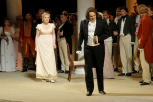 Guests are assembling for a ball at a mansion in St Petersburg; Onegin, home from his travels around Europe, is there too. Neither changes of scenery nor high society have lifted his anguish. Prince Gremin and his wife arrive and Onegin recognises her to be Tatiana. The Prince cordially tells him of his happy marriage and introduces Tatiana. Onegin is staggered – surely this noble and refined society lady is not the same girl to whom he once read a moral admonition? Onegin uneasily admits to himself: “Alas, there’s no doubt, I’m in love, in love like a boy, a passionate youth!”