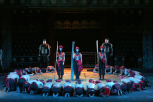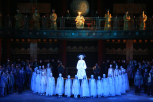 A crowd assembled by the walls of the Imperial palace in Peking listens to a Mandarin reading a decree – anyone who wishes to win the hand of Princess Turandot must solve three riddles; whosoever cannot answer must die. The young Prince of Persia is to be executed this night. The excited crowd rushes towards the palace, but the guards keep the people back. An old man falls to the ground. In anguish, a young girl calls for help. A young man rushes out from the crowd, recognising the old man to be his father. Their unexpected meeting is not a joyful occasion – old Timur´s enemies have usurped his throne and banished him from his native land; his son Calaf has been forced to wander foreign parts, hiding his name from everyone. Timur is accompanied everywhere by the faithful slave girl Liù, whose love for Calaf is unrequited. Preparations for the execution are underway on the square. Night descends. As the moon rises, the crowd awaits the appearance of Turandot. A triumphal procession approaches. It is met by a funeral procession – that of the Prince of Persia going to his execution. The people feel pity for him and beg Turandot to have mercy on him. Calaf vengefully curses the hard-hearted Princess. Finally, however, she appears, and Calaf is blinded by her beauty. In vain, his father tries to dissuade him: Calaf knows he must win Turandot´s heart. Suddenly the ministers Ping, Pong and Pang bar his way. They warn the Prince and jeer at him, summoning the spirits of those who have died from their love of Turandot. Liù begs Calaf to leave – neither she nor his father could bear to see him die. Calaf is touched by her entreaties, but cannot relinquish his love for Turandot. At his signal, a servant strikes a huge gong three times, declaring Calaf´s decision to attempt to win the Princess.