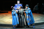 Turandot announces her first riddle: what bright, alluring vision is created at night and dies at dawn, only to return the next night? The Prince answers that it is the hope that will bring him to Turandot. The wise men confirm that hope is indeed the answer to the first riddle – it is written thus in their scrolls. The second riddle is announced: what is like a flame, yet is not a flame? What runs cold when a man dies, but burns hotter than the sun if he succeeds? In his confusion, Calaf is silent. The Emperor, Liù and the crowd encourage him and he finds the answer – it is the blood that flows in his veins from his love for Turandot. The Princess is struck with rage and fear and she hurries to pose her third riddle: what is like ice but freezes in fire? What makes a man a slave if he wants to be free and makes him a King if he becomes its servant? In triumph, Turandot mocks the Prince. What kind of ice could he burn in? However, Calaf solves the third riddle: it is Turandot , and the ice of her heart will melt in the fire of his love. The crowd praises the victor. In terror, Turandot begs her father not to marry her to the stranger, but the Emperor is unyielding – his word is sacred. Calaf, however, will not accept Turandot´s hand against her will as he desires the Princess´ love. He sets Turandot just one riddle which she must solve by daybreak: in all Peking not one person knows his name. If the Princess can discover it, he will die willingly.